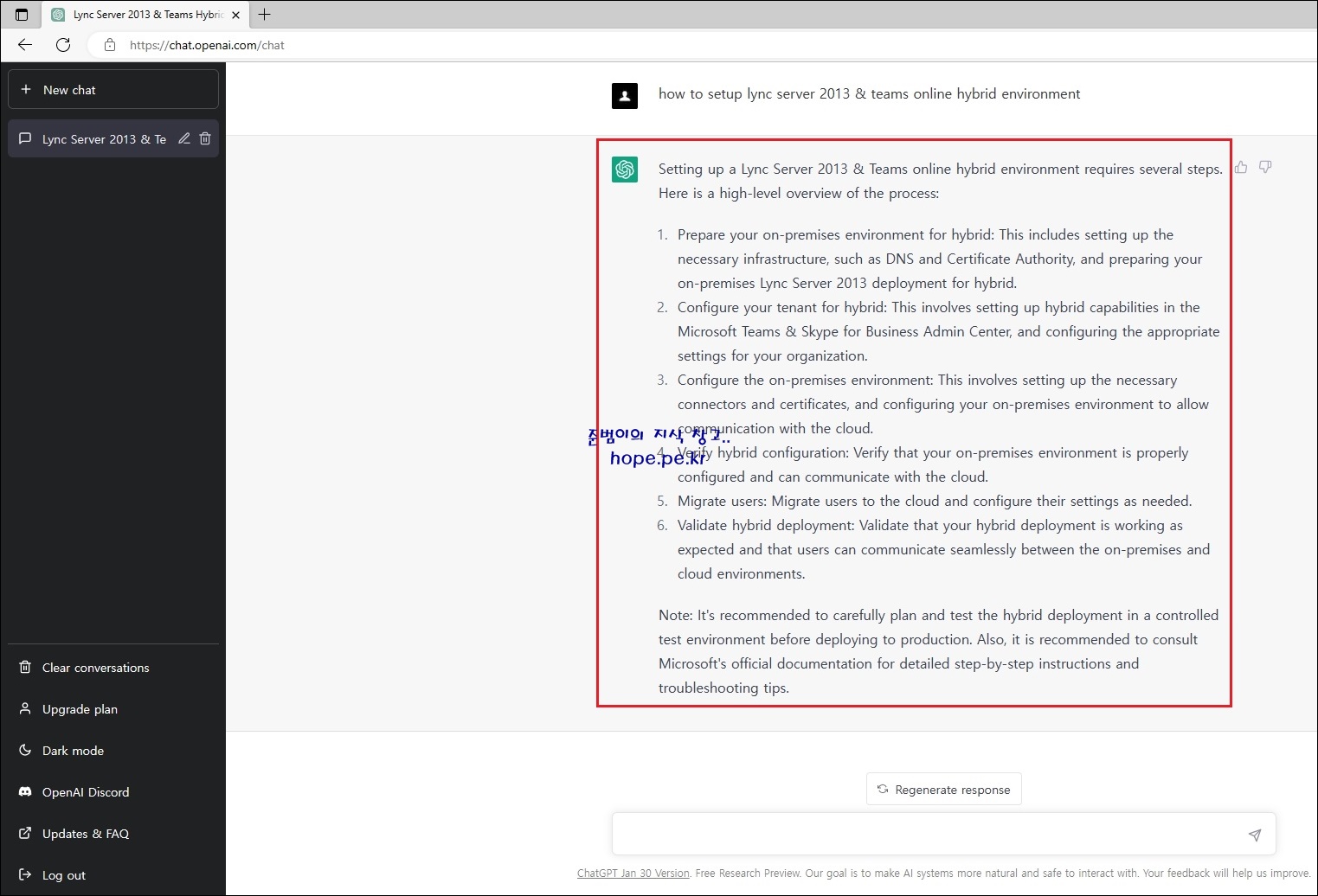 'how to setup lync server 2013& teams online hybrid environment' 입력후 '보내기 버튼' 을 클릭 합니다.