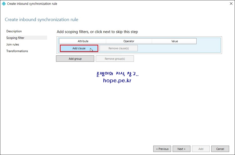 'Add clause' 를 클릭 합니다.