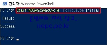 마지막으로 PowerShell에서 다음 cmdlet 명령어를 실행하여 동기화 스케줄링을 시작 합니다.