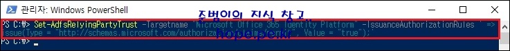 다음 cmdlet 명령어를 실행하여, 신뢰 당사자 트러스트에 Microsoft 365를 수동으로 추가 합니다.