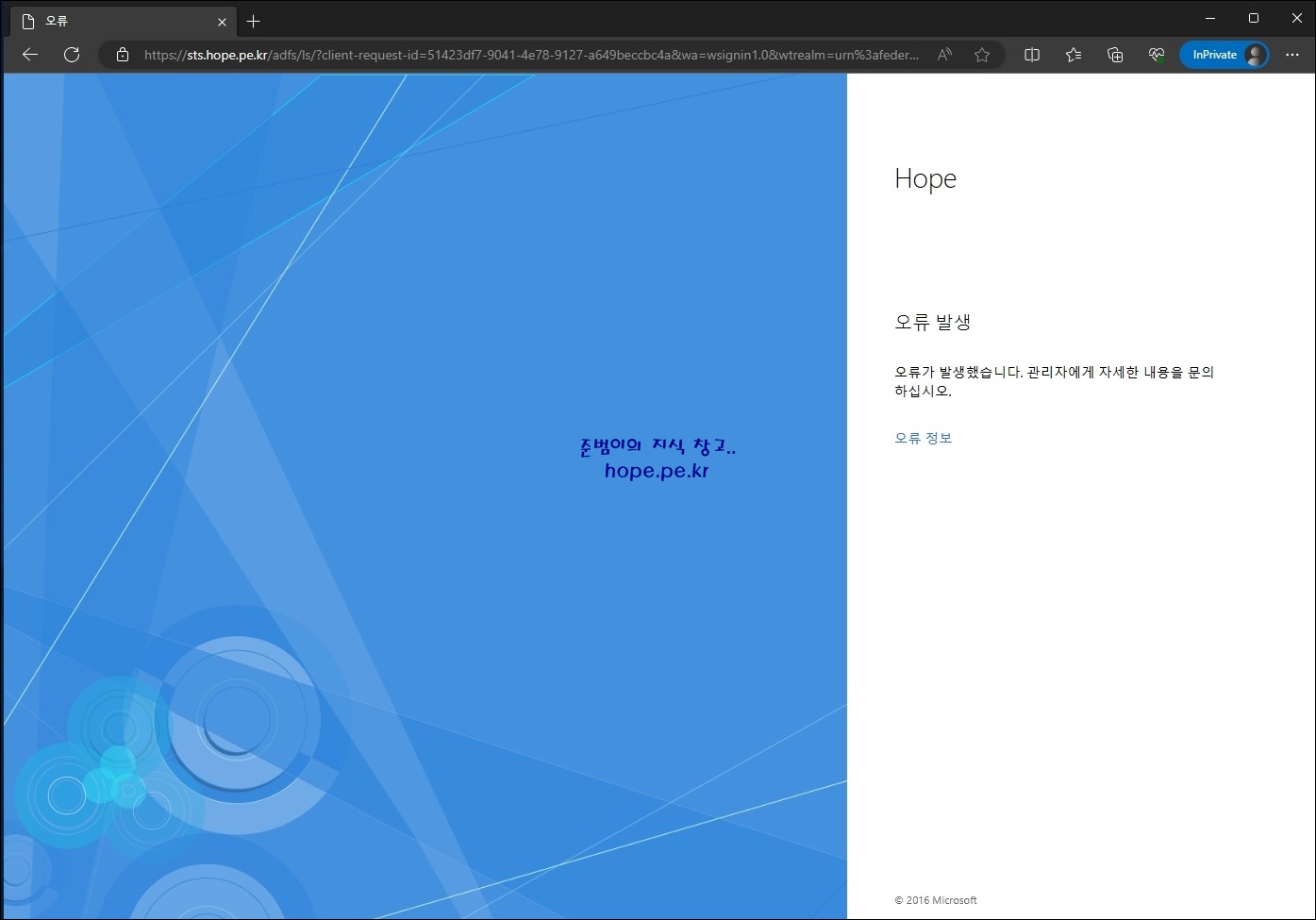 cf) 참고로 해당 이슈는 Windows Server 2016 ADFS 환경에서 자주 발생하였습니다.