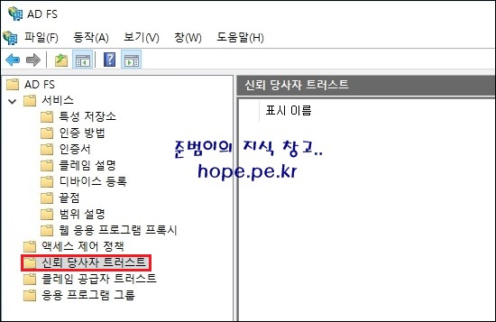 AD FS 콘솔의 신뢰 당사자 트러스트에, Microsoft 365가 정상적으로 추가됨을 확인 합니다.