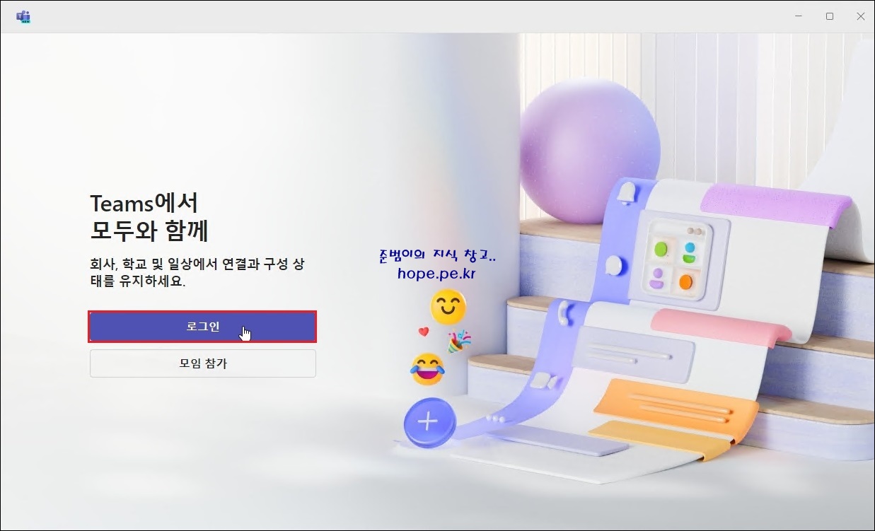Microsoft Teams (work or school) 설치 창이 실행되면, 'Teams 설치' 를 클릭 합니다.