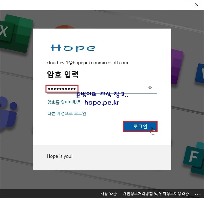 암호 입력 화면에서, '암호' 입력 후 '로그인' 을 클릭 합니다.