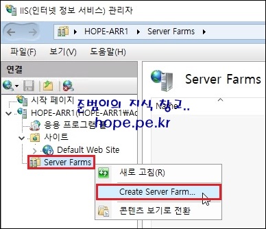Server Farms 에서 우클릭 후 'Create Server Farm' 을 클릭 합니다.