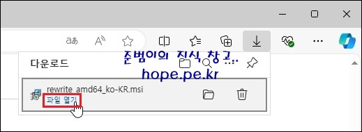 다운로드가 완료되면 'rewrite_amd64_ko-Kr.msi' 설치 파일에서, '파일 열기' 를 클릭 합니다.