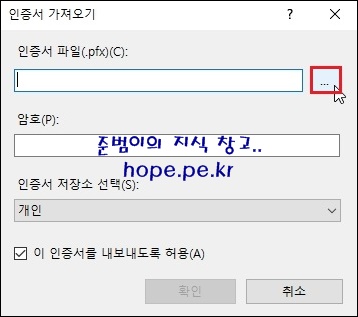 인증서 가져오기 창에서, '...' 을 클릭 합니다.