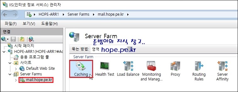 '생성한 서버 팜' 클릭 후 'Caching' 을 더블 클릭 합니다.
