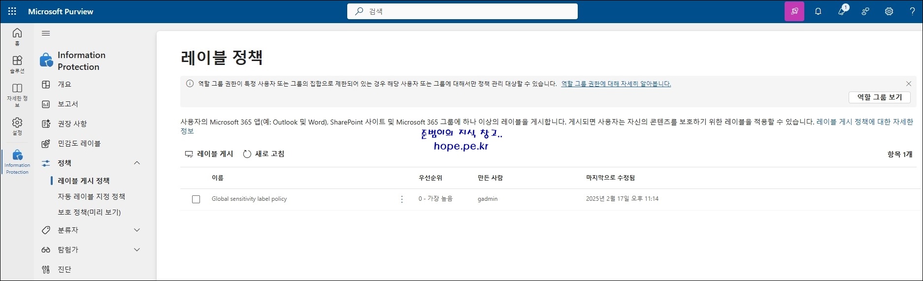 | Microsoft Purview Information Protection(MPIP) 민감도 레이블 만들기 - 사용자 권한 지정 (0) | 2024.11.27 |