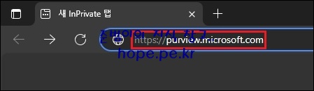 먼저 Microsoft Purview 포탈 (https://purview.microsoft.com) 에 접속 합니다.