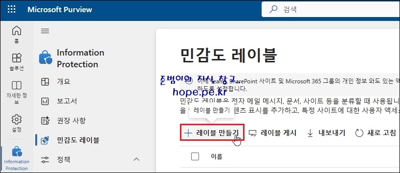 참고: Microsoft Purview AIP 민감도 레이블 만들기