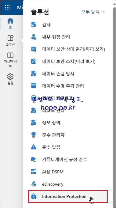 좌측 하단에 Information Protection 버튼이 추가 되고, Information Protection 화면으로 이동 됩니다.