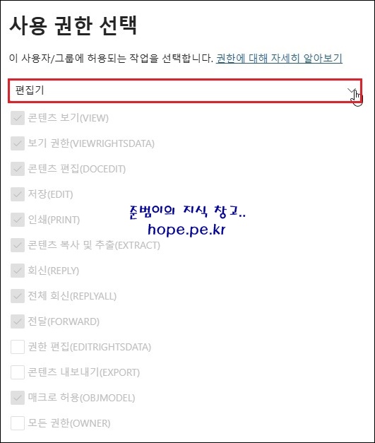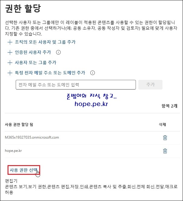 '사용 권한 선택' 을 클릭 합니다.
