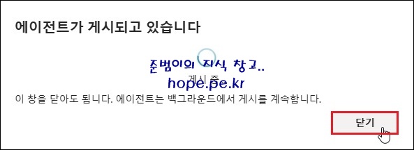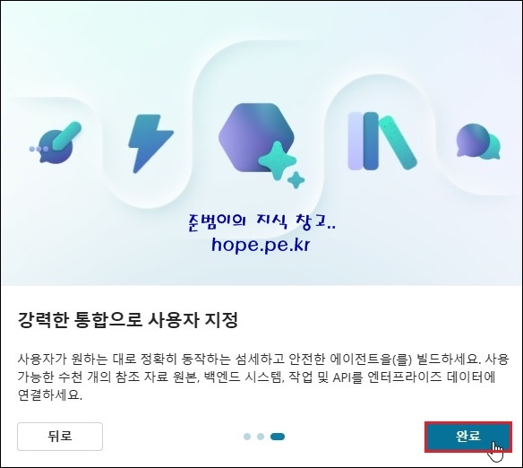 마지막 안내 창의 메세지 확인 후, '완료' 을 클릭 합니다.