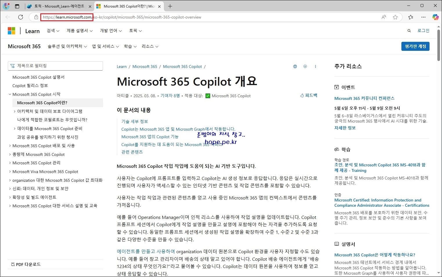 새 창으로 Microsoft Copilot Learn 사이트로 이동됨을 확인할 수 있습니다.